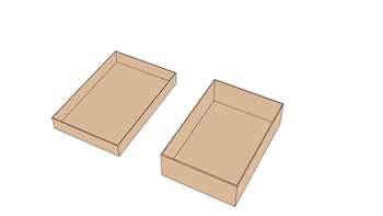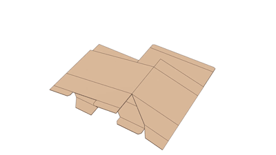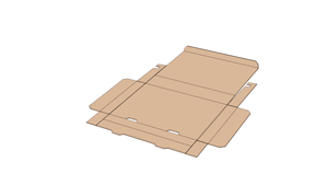 製造の際、機械の調整だけで箱寸法の変更が可能なため、抜型などを必要とせず、手軽に入手することが出来る箱形状。ある程度決まった位置に直線的な加工しか出来ません。