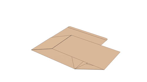 4隅は完全にふさがり、また最低でも1面は段ボールが折り返されているためヤッコ型に比べ強度がある箱形状です。