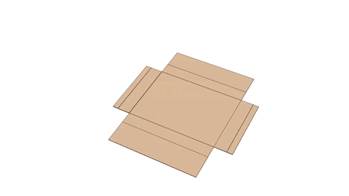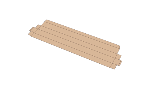 製造の際、機械の調整だけで箱寸法の変更が可能なため、抜型などを必要とせず、手軽に入手することが出来る箱形状。ある程度決まった位置に直線的な加工しか出来ません。