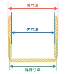 段ボールは厚みがあるので、外寸法と内寸法があります。