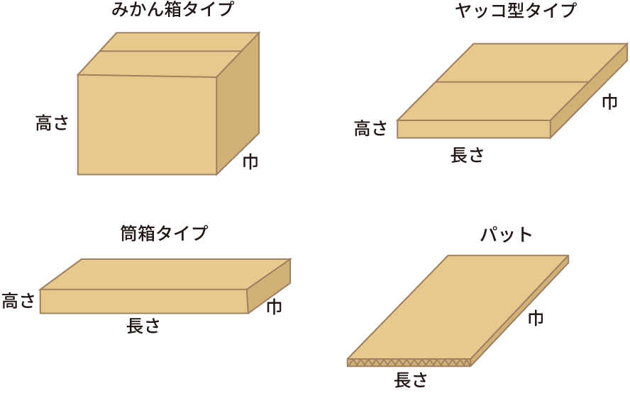 段ボールは厚みがあるので、外寸法と内寸法があります。